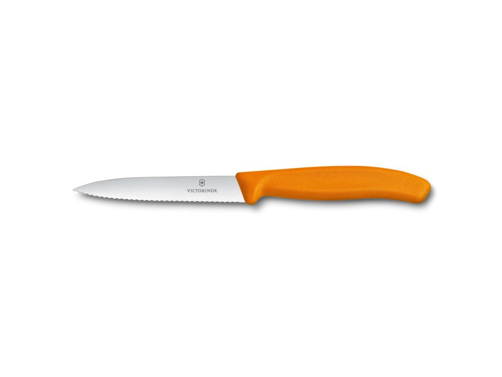 Nož za zelenjavo 10 cm, nazobčano rezilo, oranžna, plastika, Victorinox