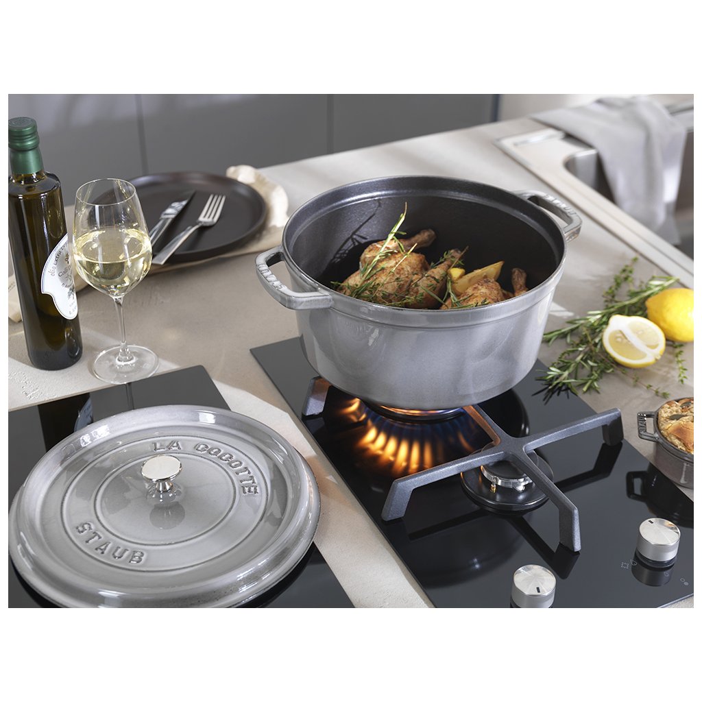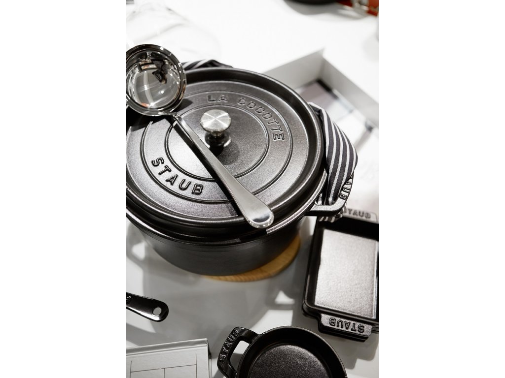Vodilni kuharski mojstri imajo radi litoželezno posodo Staub zaradi njenih izjemnih lastnosti: dolgo ohranja toploto, izboljša okus hrane in je praktično neuničljiva.