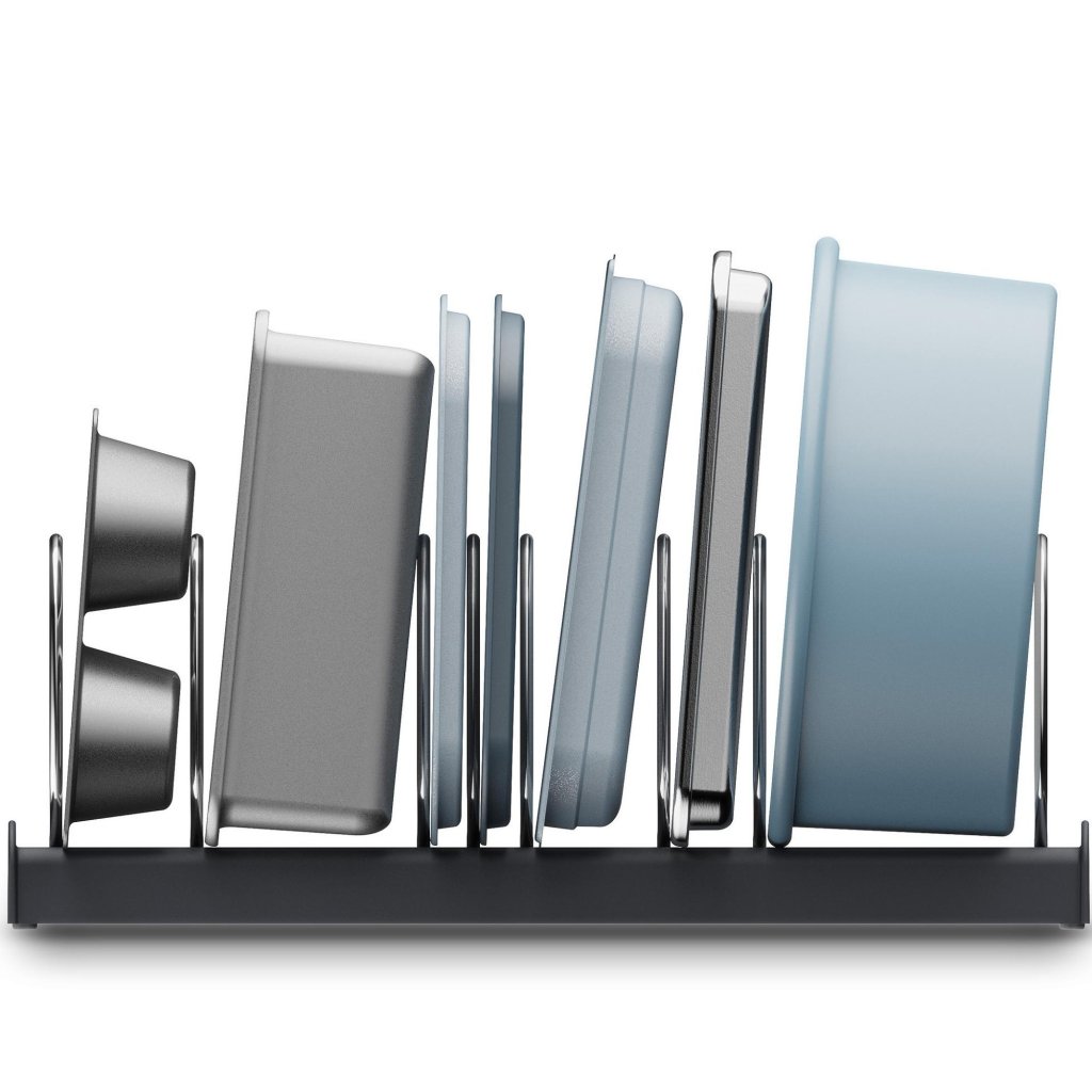 - Nastavljivi predelki pomagajo ločiti različne vrste kuhinjske opreme, tako da ima vsak pekač ali model svoje mesto.