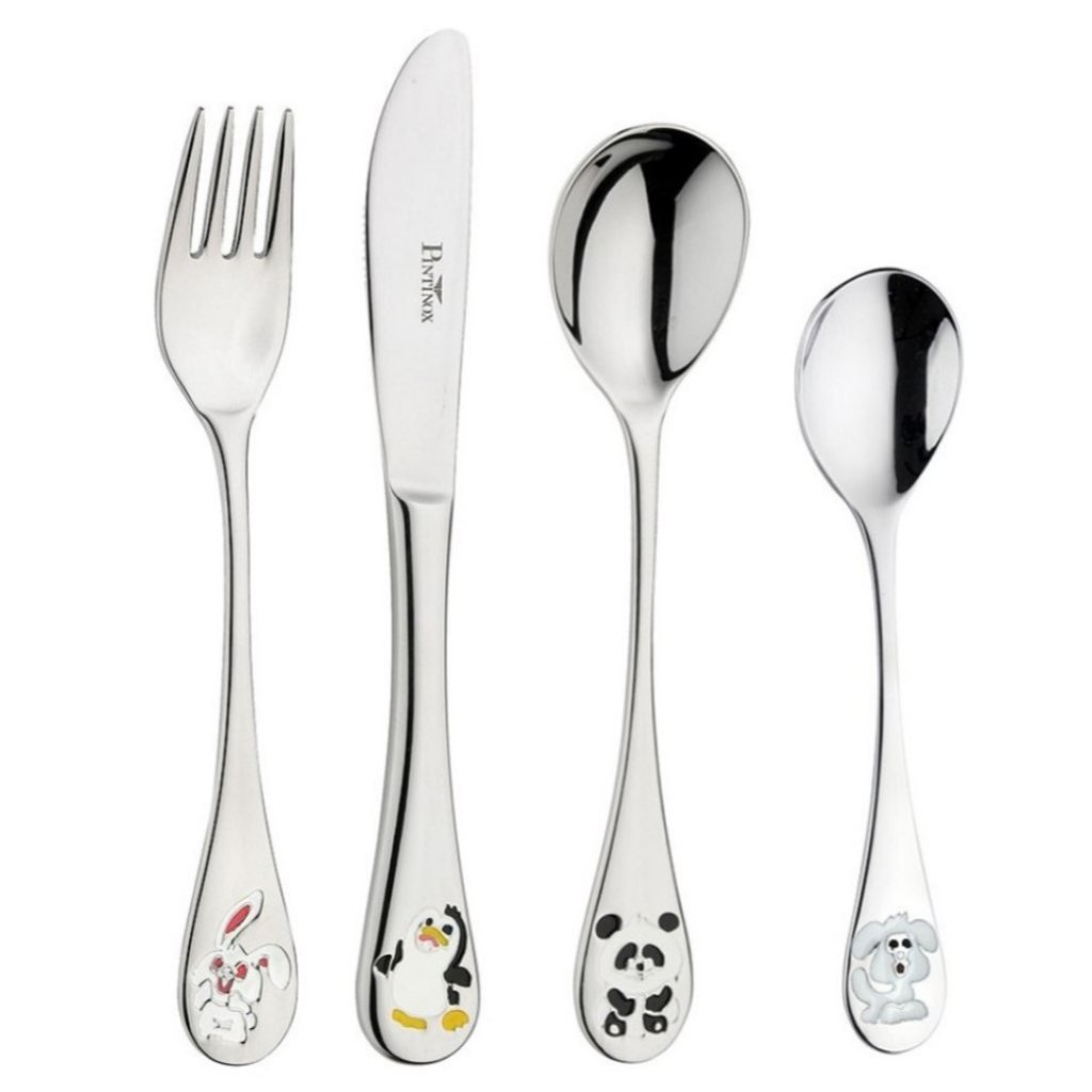 - Otroški jedilni pribor set 4 kosov ARCA DI NOE znamke Pintinox prinaša veselje in zabavo pri vsakem obroku za otroke.
