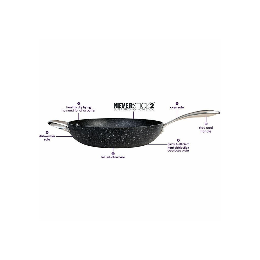 Kuhinjska posoda Eaziglide Neverstick2 predstavlja najnovejšo tehnologijo in revolucionarne inovacije na področju kuhinjske posode brez prijemanja. Eaziglide Palica Neverstick2, izdelana iz kaljenega aluminija, je posebej zasnovana za lažje življenje. Ekskluzivna površina Neverstick2 zdrži veliko dlje kot druge površine in uporablja 7-krat močnejšo tehnologijo, zato lahko zdravo kuhate brez olja ali drugih maščob.