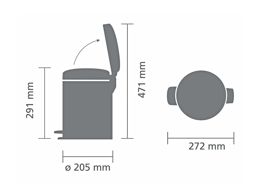 Koš za smeti s pedalom NEWICON, 5 l, mat črna, Brabantia