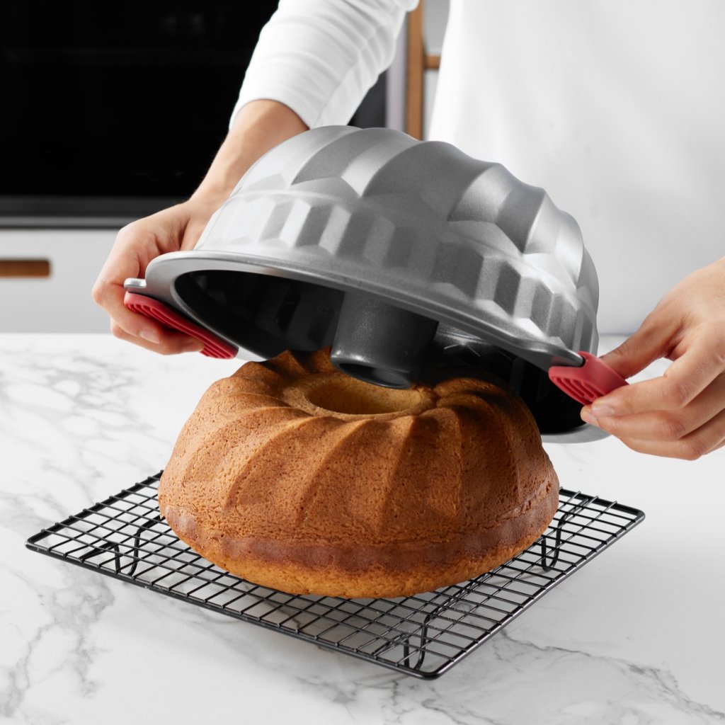 - strukturiran vzorec kalupa ustvari dekorativen videz torte, ne da bi bilo treba uporabiti dodatno dekoracijo