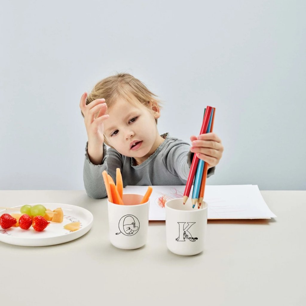 - Praktična skodelica MOOMIN ABC s črko K in ilustracijo, navdihnjeno s svetom Muminov, je idealna za vsakodnevno uporabo tako za otroke kot za odrasle.