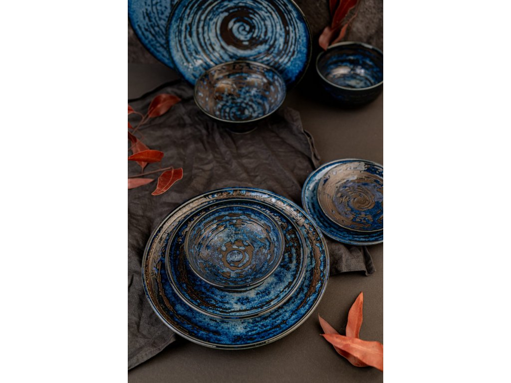 Plitev krožnik iz kolekcije Copper Swirl proizvajalca MIJ je ročno izdelan iz trpežne naravne keramike, ki ne vsebuje škodljivih primesi ali težkih kovin. Izdelujejo ga japonski mojstri, katerih tradicija sega v 12. stoletje. Barve so visokokakovostne, se ne lu ščijo in ne vsebujejo škodljivih snovi.