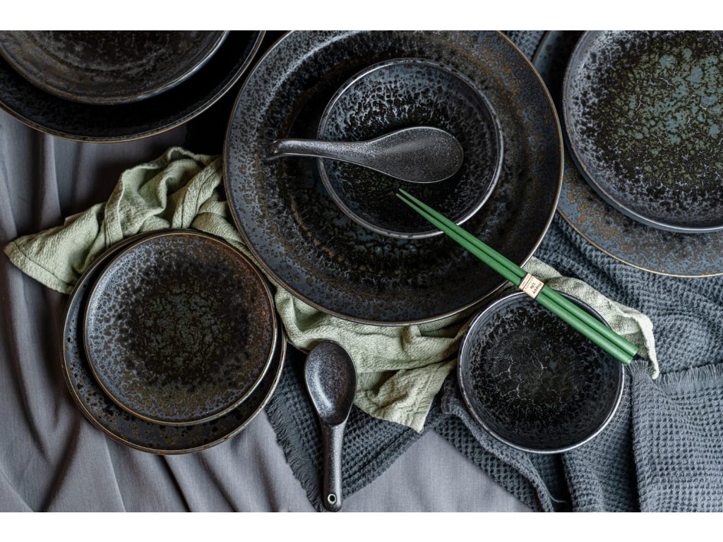 Plitva plošča za predjed iz kolekcije Black Pearl MIJ je ročno izdelan iz trpežne keramike, ki ne vsebuje škodljivih nečistoč in težkih kovin. Izdelujejo ga japonski mojstri, katerih tradicija sega v 12. stoletje. Barve so visokokakovostne, se ne lu ščijo in ne vsebujejo škodljivih snovi.