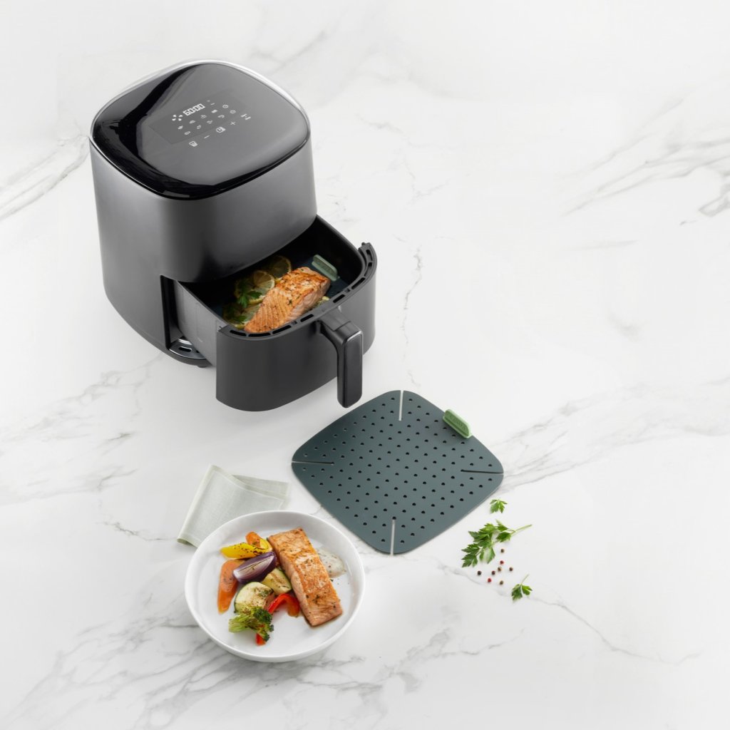 - Silikonska podloga za cvrtnik na vroč zrak Lékué pomaga doseči popolnoma hrustljave rezultate, hkrati pa ščiti notranjost cvrtnika pred onesnaženjem.