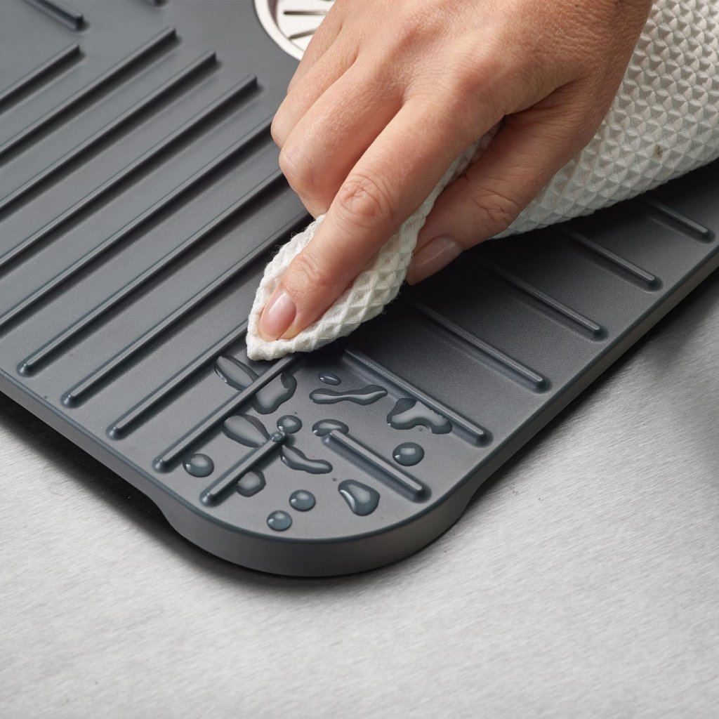- Podloga ni primerna le za zaščito korita, ampak tudi kot praktična površina za odlaganje in odkapavanje pomite posode.