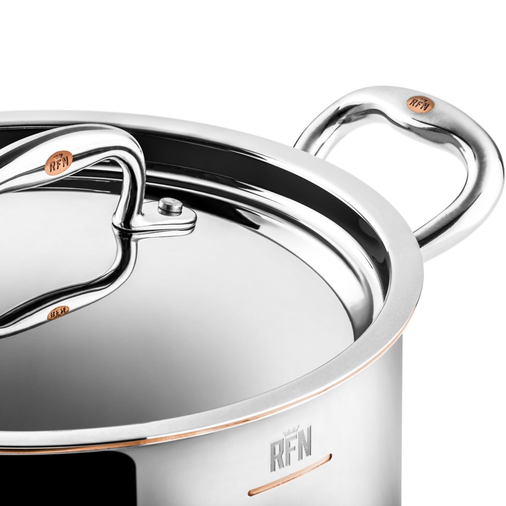 - izdelan iz bakra in prevlečen z visokokakovostnim nerjavečim jeklom v zrcalnem sijaju za največjo trdnost, praktičnost in enostavno vzdrževanje