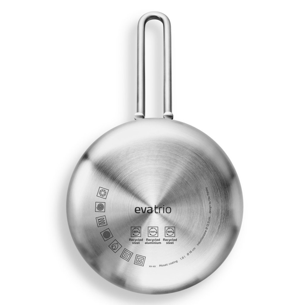 - 1,8-litrski lonec iz nerjavečega jekla ponev združuje tradicionalno zasnovo EVA TRIO z inovativnimi materiali za izboljšano kuhanje