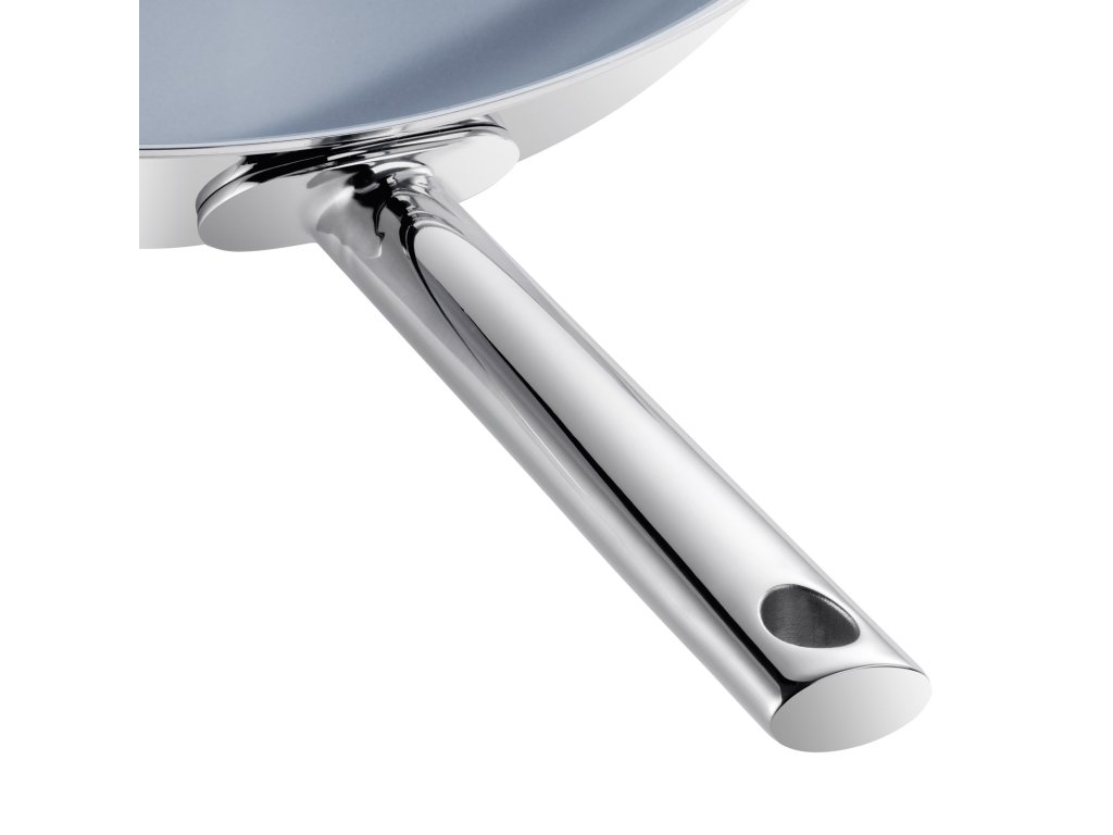 Ergonomsko oblikovan ročaj in nasprotni ročaj iz poliranega nerjavnega jekla, ki se ne prijema, zagotavljata varno in udobno rokovanje. Stekleni pokrov je zaradi svojih optimalnih dimenzij in silikonskega tesnila popolnoma primeren za energijsko varčno kuhanje. Zaradi vizirnega stekla lahko hrano preverite, ne da bi dvignili pokrov.
