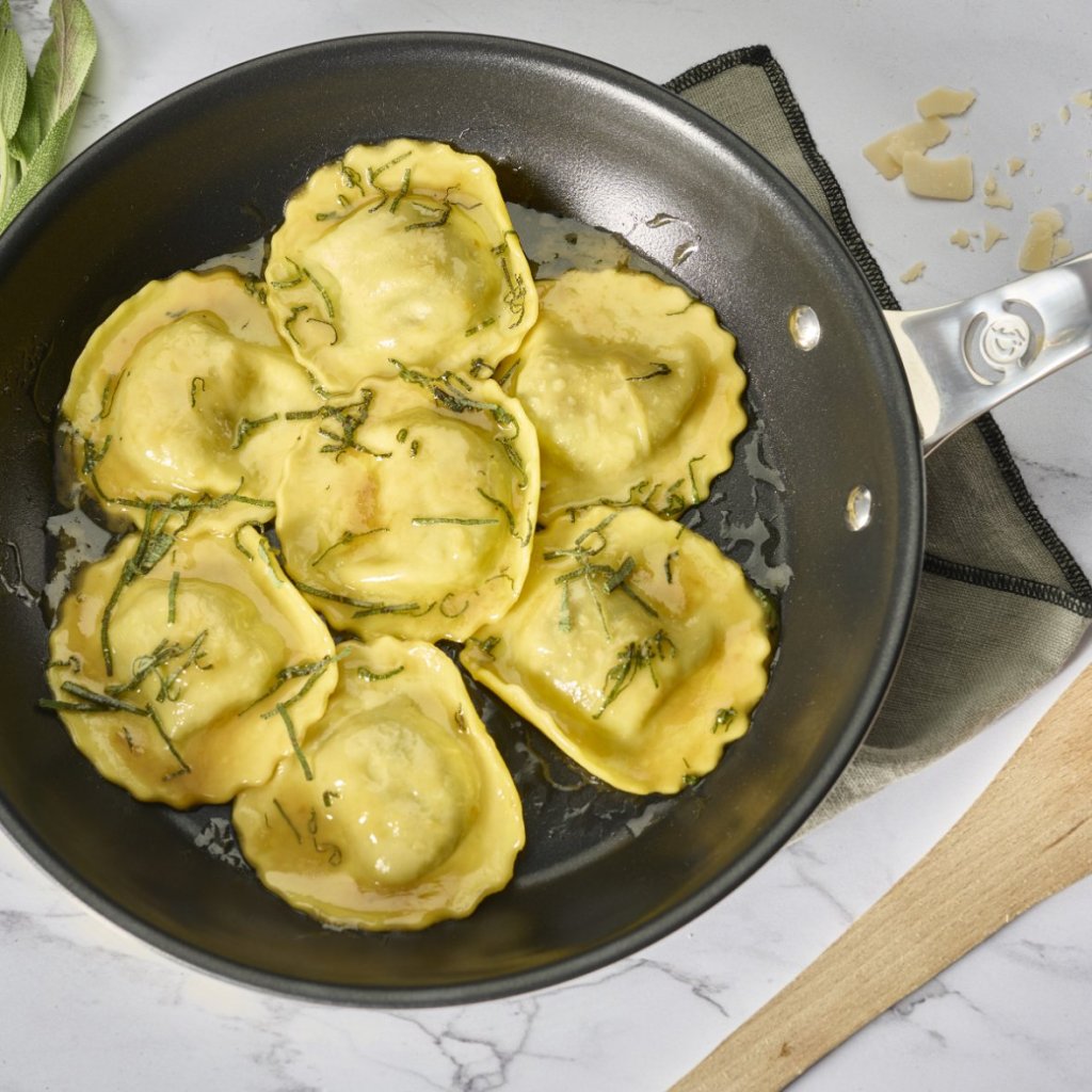 - nerjaveče jeklo ponev z nelepljivim premazom de Buyer AFFINITY s premerom 32 cm je idealno za nežno kuhanje brez zažganja in enostavno serviranje jedi