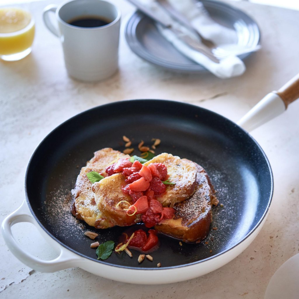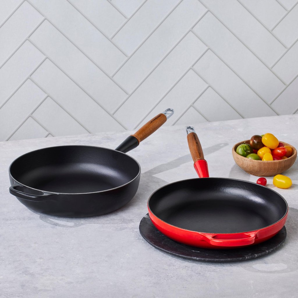 - Litoželezna ponev Le Creuset v barvi NECTAR z lesenim ročajem je odlična izbira za vsakodnevno kuhanje, od praženja mesa do sotiranja zelenjave.