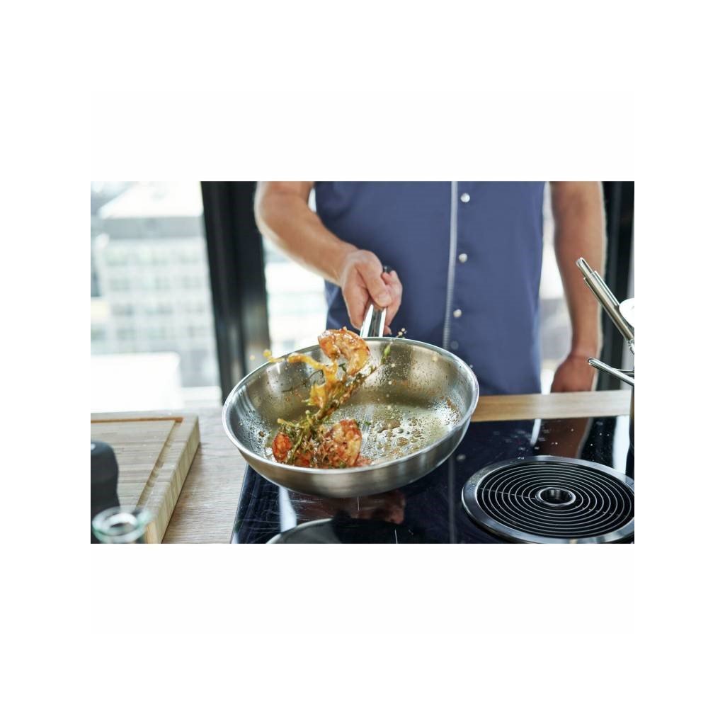 Ponev Zwilling Pro je izdelana iz vrhunskega 3-slojnega materiala SIGMA Clad. Robustno aluminijasto jedro, ovito z dvema plastema jekla, zagotavlja hiter in enakomeren prenos toplote po celotni površini ponve, zato je idealna za cvrtje. Ko se segreje, lahko kmalu zmanjšate dovod toplote in tako prihranite energijo. Nasprotno pa ročaj ostane hladen tudi med dolgotrajno uporabo, zato je udoben za uporabo. Ponev ima tudi privlačno satenasto gladko površino, ki je občutno bolj odporna na praske. Tako se lahko v miru posvetite svojim kuharskim veščinam.