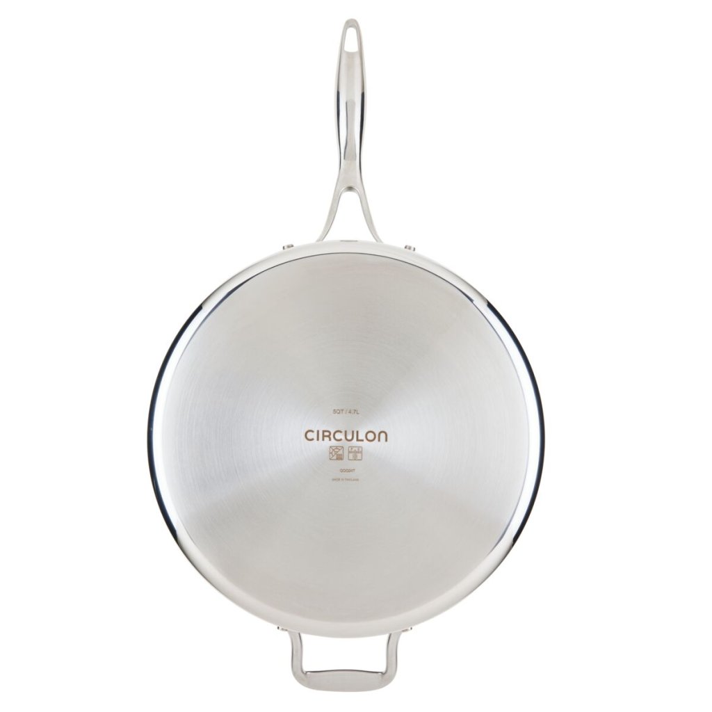 - Velika ponev za praženje s pokrovom Circulon SCRATCHDEFENSE C1 s prostornino 4,7 litra je zaradi široke oblike in visokega roba idealna izbira za kombinacijo sotiranja, dušenja in cvrtja