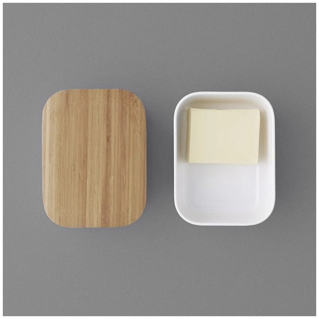 Posoda za maslo BOX-IT 15 cm, bela, plastika / bambus, RIG-TIG
