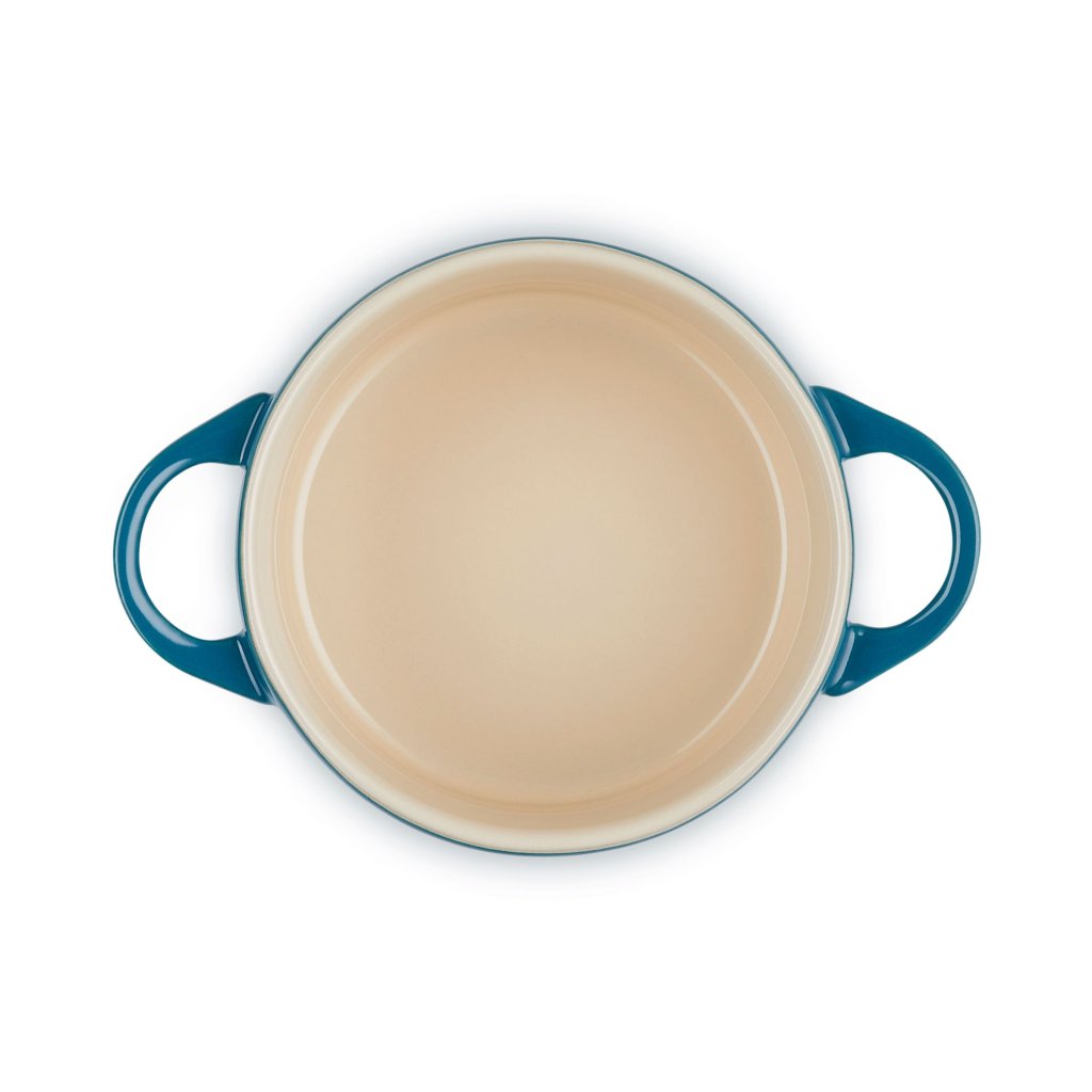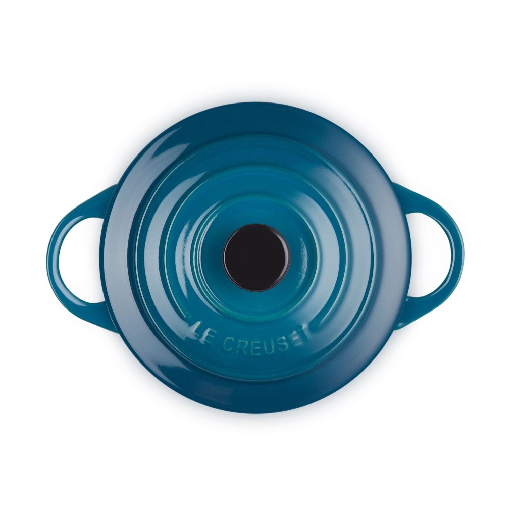 - Majhna keramična posoda lonec za kuhanje Le Creuset v odtenku DEEP TEAL je idealna za serviranje posameznih porcij, omak ali manjših jedi.