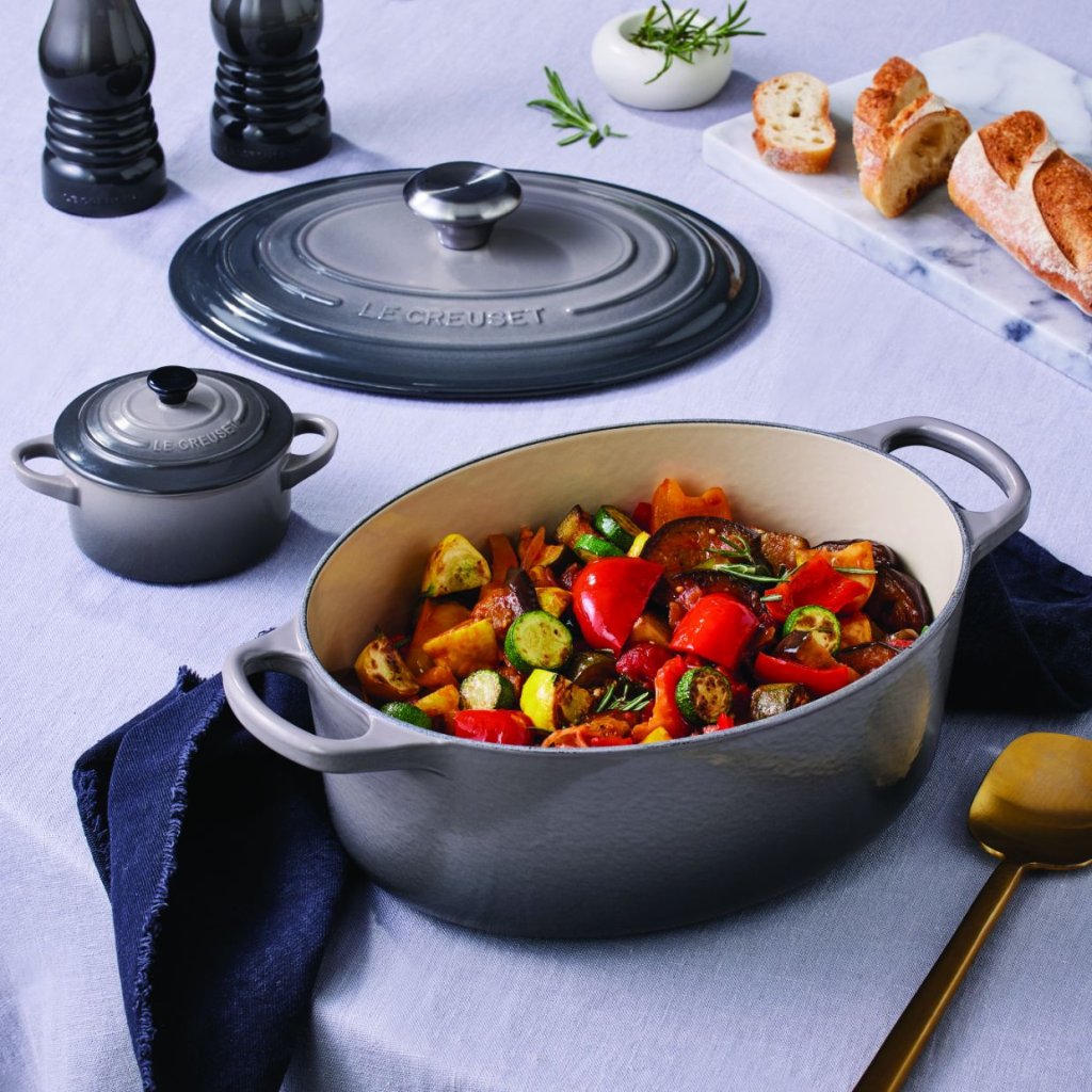 - Majhna keramična posoda lonec za kuhanje Le Creuset v odtenku FLINT je idealna za serviranje posameznih porcij, omak ali manjših jedi.