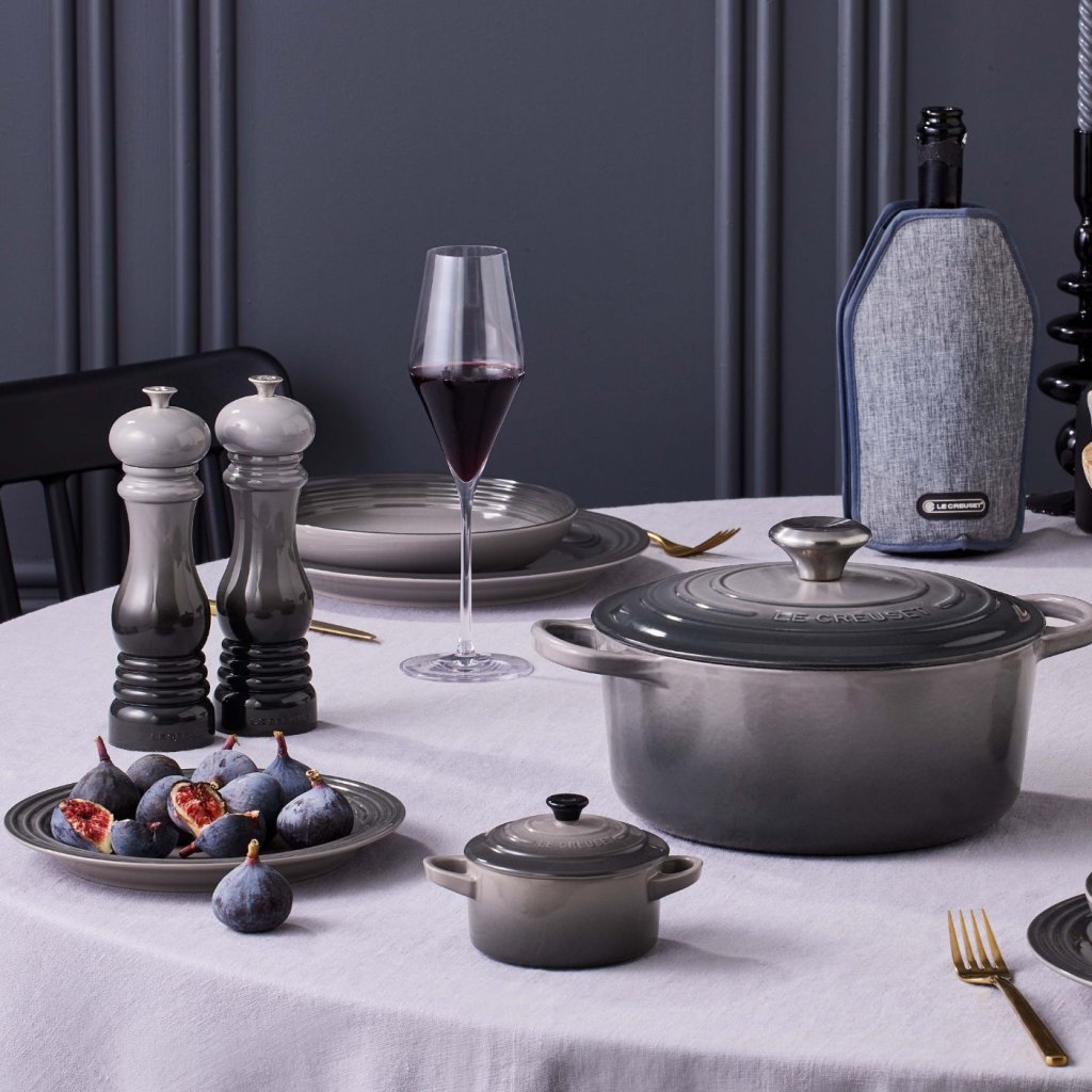 - Odtenek FLINT je ena najbolj univerzalnih barv v kolekciji – odlično se poda k nevtralnim tonom in živahnim odtenkom, ne glede na to, ali je kombiniran z drugim jedilnim priborom Le Creuset v istem odtenku ali z odtenki MIST GREY, MERINGUE ali CERISE.