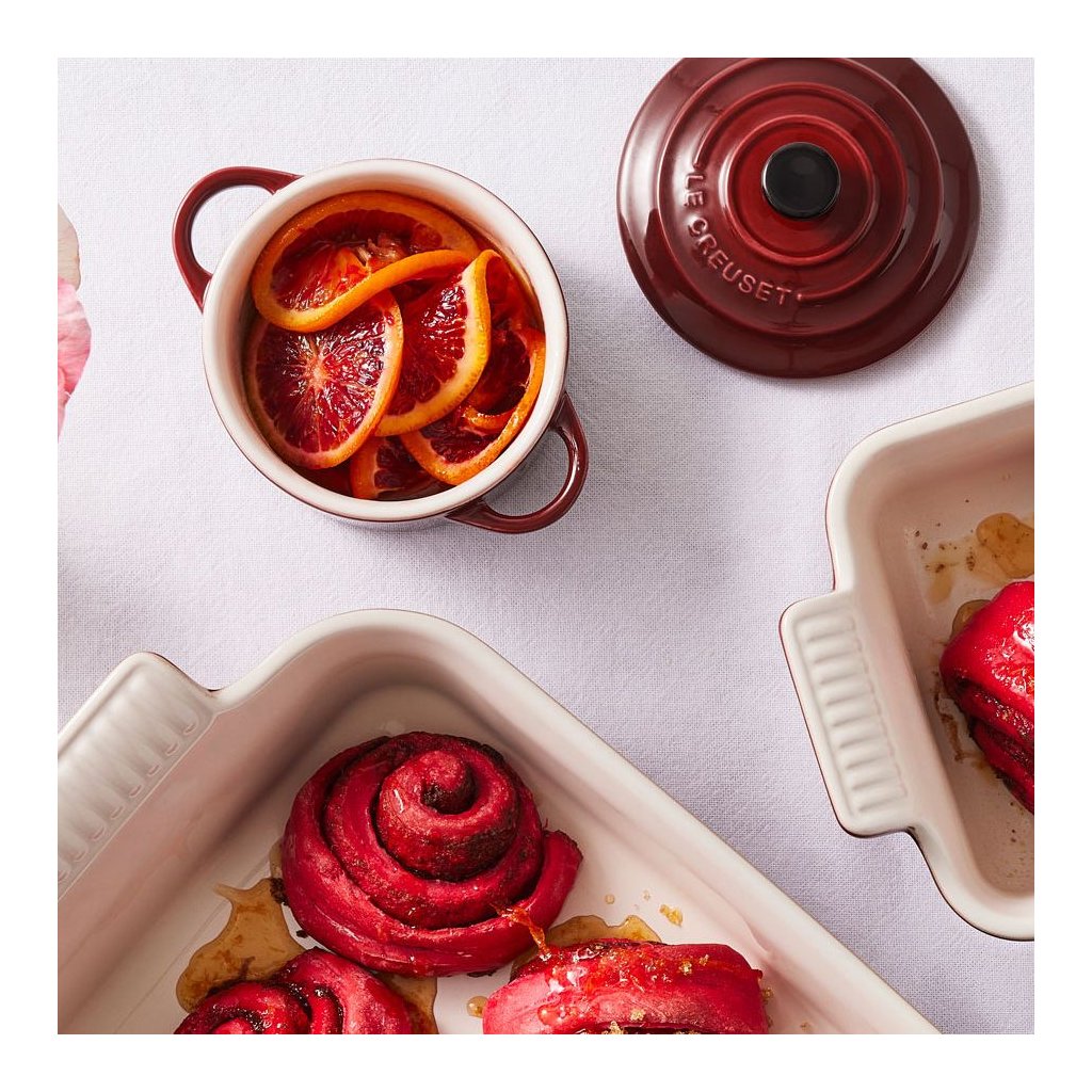 - Majhna keramična posoda lonec za kuhanje Le Creuset v odtenku GARNET je idealna za serviranje posameznih porcij, omak ali manjših jedi.