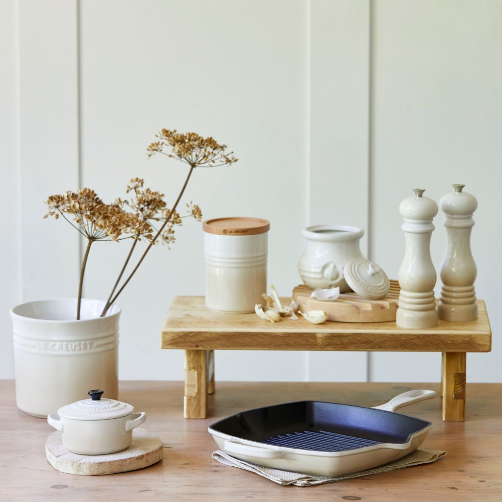 - Odtenek MERINGUE se popolnoma prilega vsaki notranjosti – njegov nevtralni ton deluje mirno in harmonično ter ga je mogoče enostavno kombinirati z drugim namiznim priborom Le Creuset v istem odtenku ali drugih barvah v kolekciji, kot so SHELL PINK, SEA SALT ali MIST GREY.