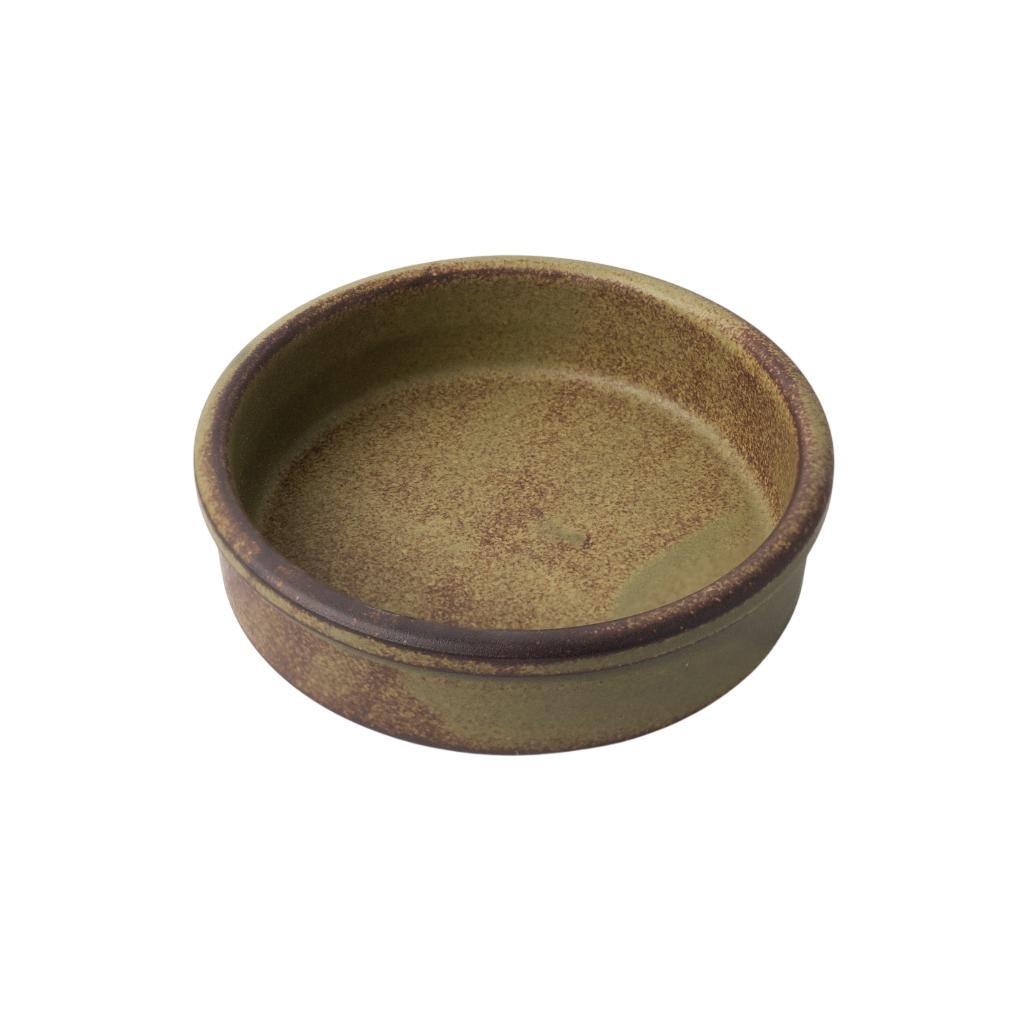 - Zelena glazura rjava z naravnim barvnim prehodom ustvarja mirno vzdušje in se dobro poda k rustikalni prehrani.
