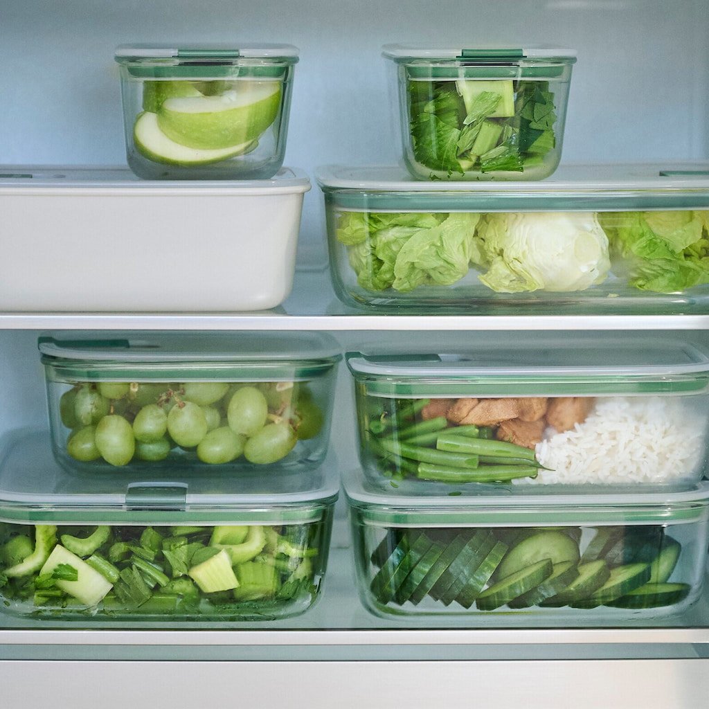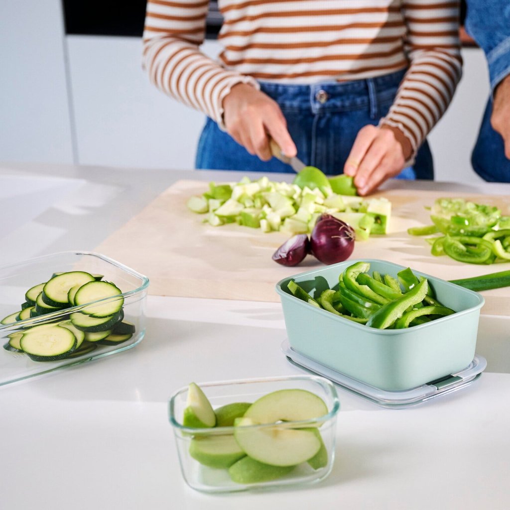 - prozorna oblika posode in pokrova omogoča takojšen pregled vsebine brez odpiranja