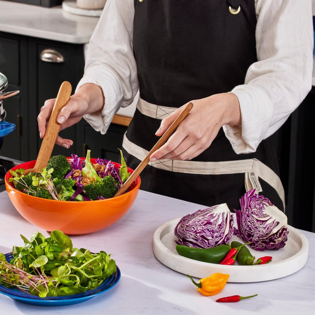 - Predpasnik Le Creuset ščiti oblačila pred padci, razlitji in umazanijo, hkrati pa daje kuhanju profesionalen videz in občutek samozavesti pri vsakem gibu v kuhinji.