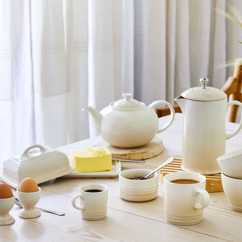 - Odtenek MERINGUE se popolnoma prilega vsaki notranjosti – njegov nevtralni ton deluje mirno in harmonično ter ga je mogoče enostavno kombinirati z drugim namiznim priborom Le Creuset v istem odtenku ali drugih barvah v kolekciji, kot so SHELL PINK, SEA SALT ali MIST GREY.