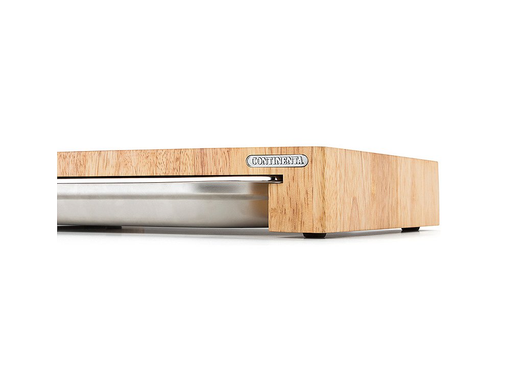 Continenta deska za rezanje v prefinjenem, brezčasnem dizajnu je zaradi naravnega materiala nežnejši do nožev, zato se rezila skorajda ne potupljajo. Gumijaste nogice na dnu plošče zagotavljajo varno delo brez nevarnosti zdrsa plošče. Izdelan je iz mozaika lepljenih lesenih kock iz stisnjenega gumijastega drevesa, zato je 100-odstotno naraven. Naoljena površina spodbuja antibakterijske lastnosti lesa in ga ščiti. Deska ni primerna za pomivanje v pomivalnem stroju.