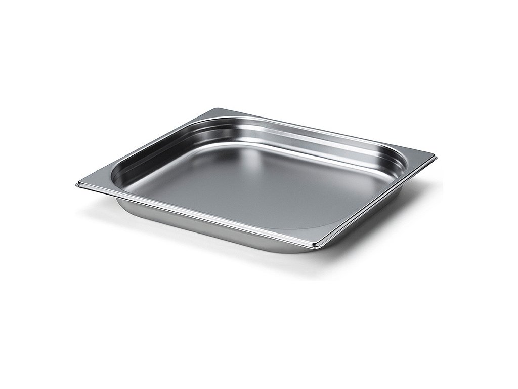 Sistem deska za rezanje vključuje tudi pladenj iz nerjavnega jekla, ki je nameščen pod deska za rezanje in služi kot servirni pladenj ali plošča za peko. Odstranljiv je z obeh strani in primeren za pomivanje v pomivalnem stroju.