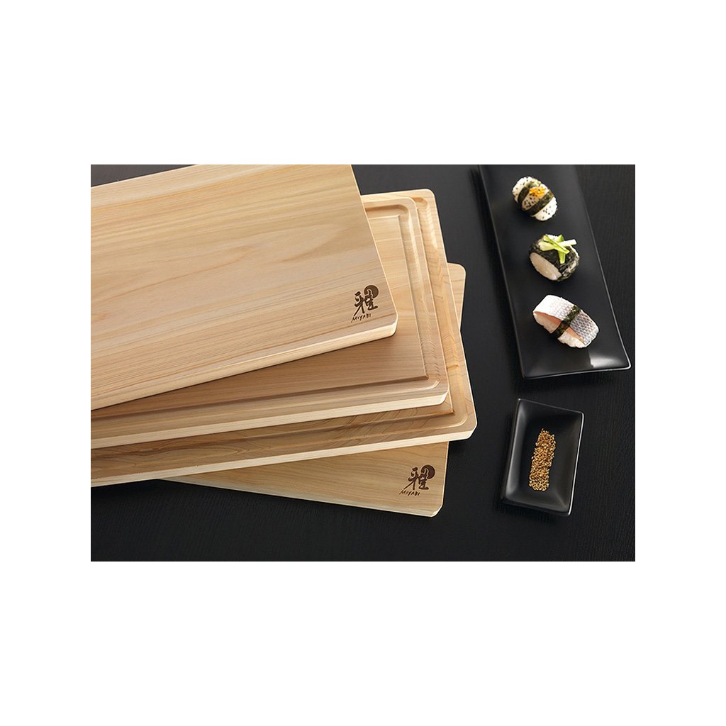 Deske za rezanje MIYABI so nepogrešljivo orodje pri delu z nožem. Japonski proizvajalec vrhunskih nožev je rezalne deske zasnoval natančno tako, da kar najbolj izkoristijo potencial nožev MIYABI. Deske za rezanje iz lesa Hinoki so izdelane iz enega kosa lesa, zato pri njihovi izdelavi ni bilo uporabljeno lepilo. Obe strani deske za rezanje lahko uporabljate za rezanje sadja in zelenjave, mesa, rib ali peciva. Skrbno izbrani material ščiti tanek rob japonskih nožev in ohranja nože dlje časa ostre.