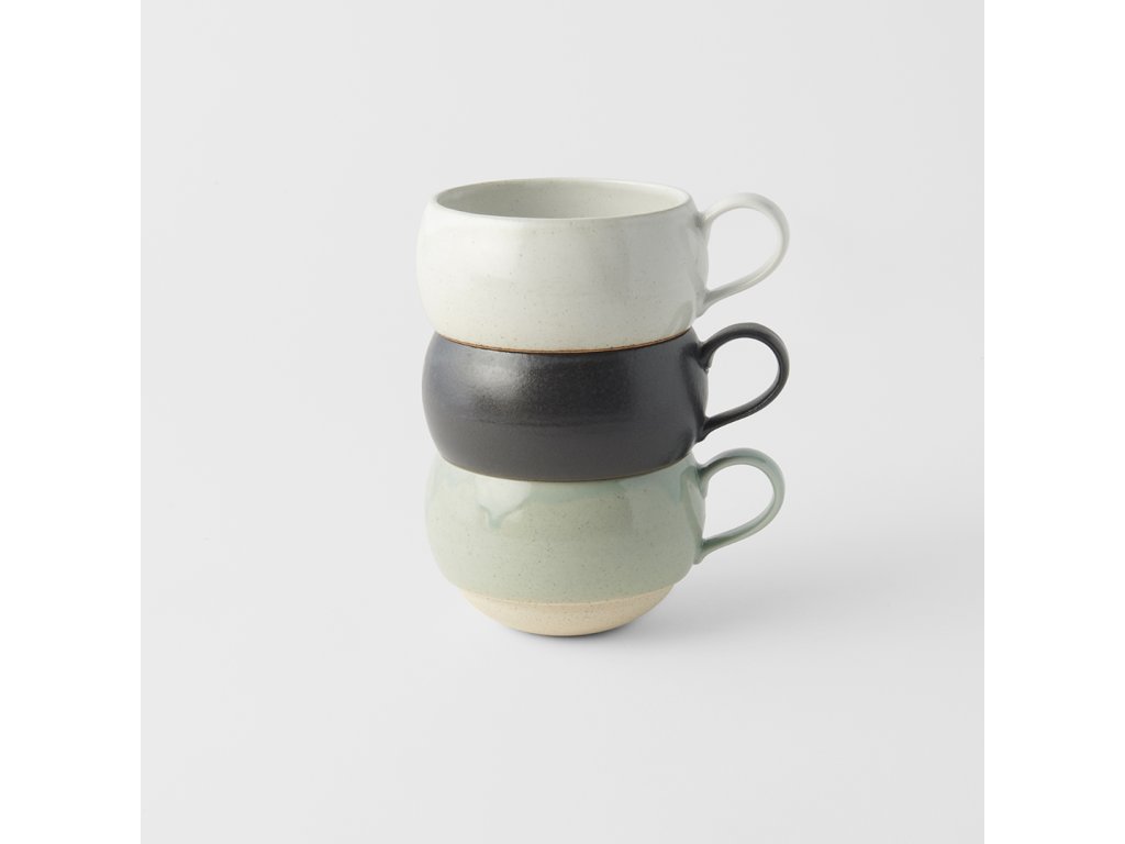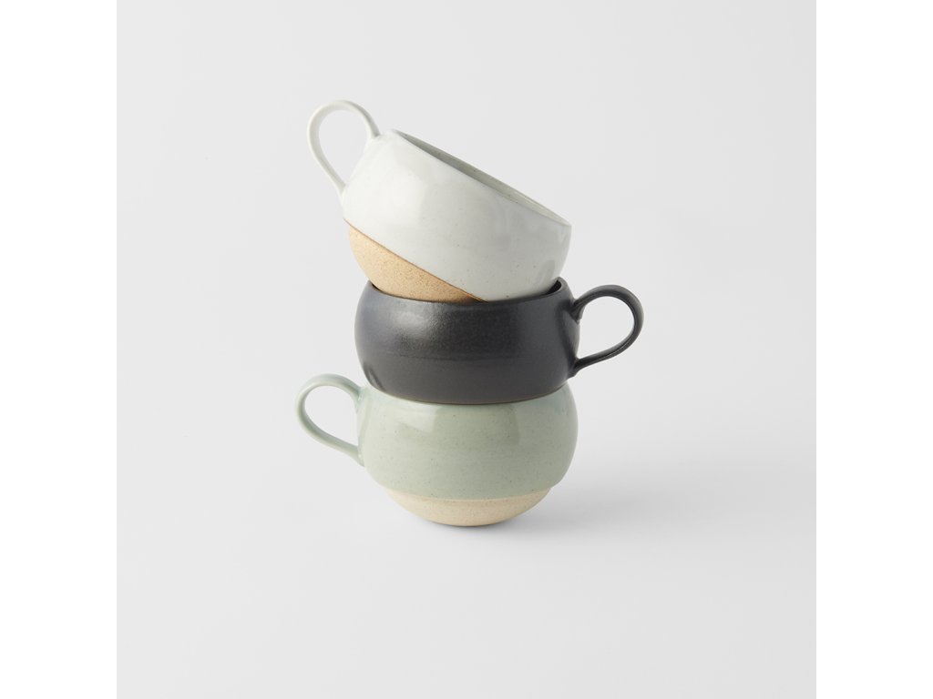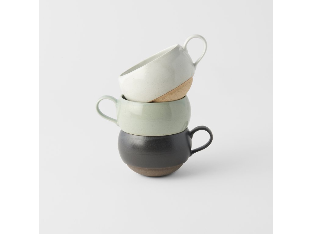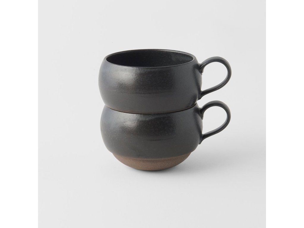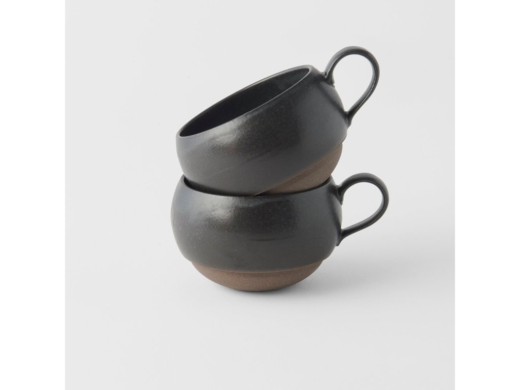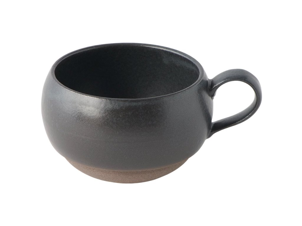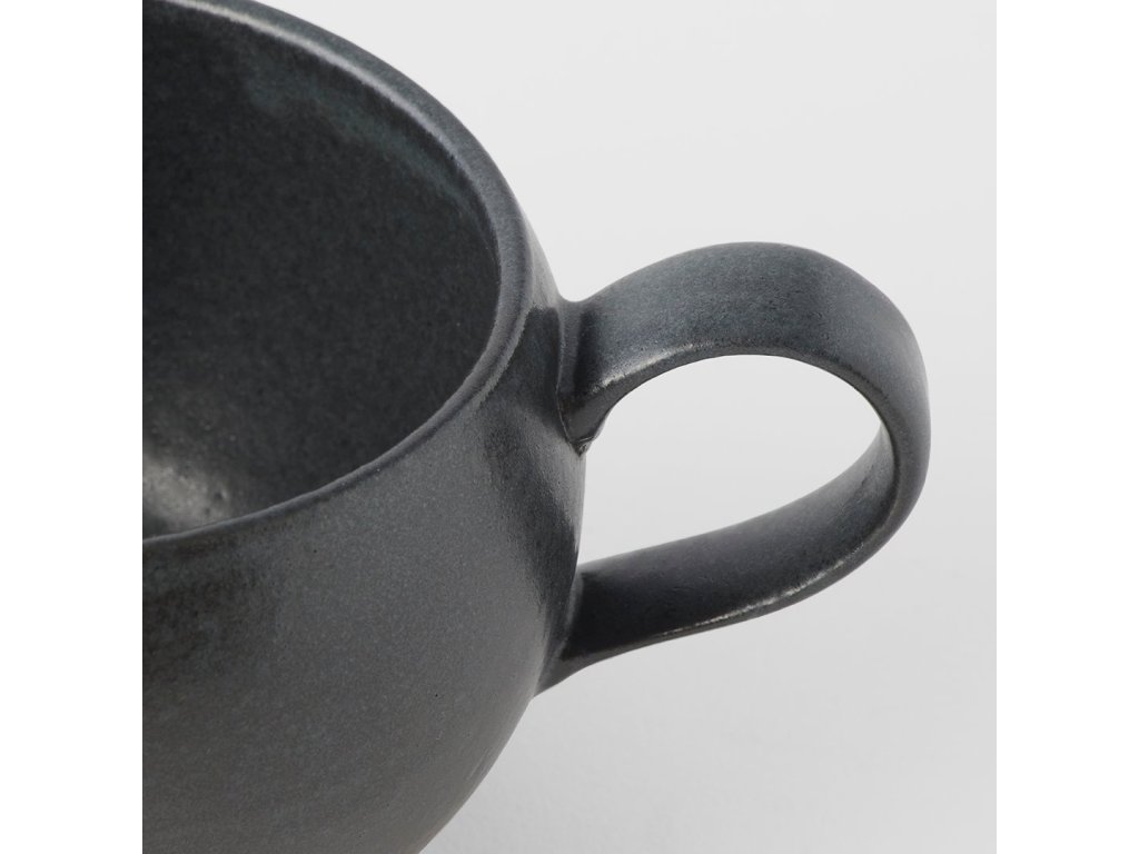 - širok črn okrogel vrč z ročajem za različne tople in hladne pijače