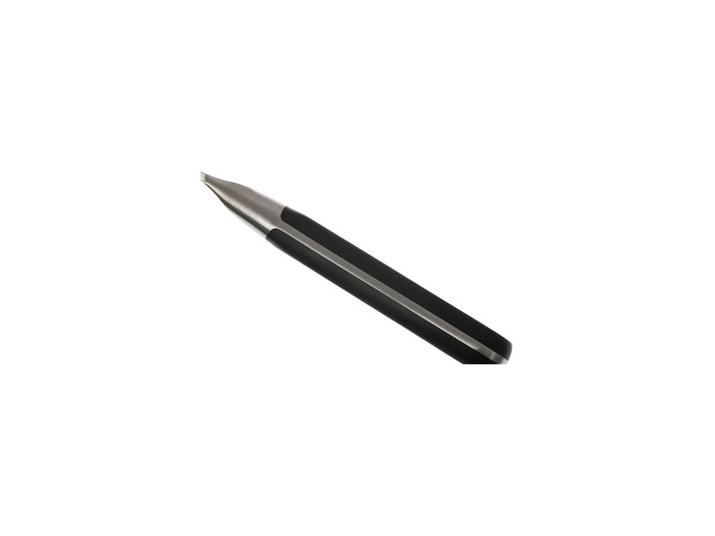 Stabilno rezilo in popolna geometrija rezila zagotavljata izjemno zmogljivost rezanja in natančen nadzor pri rezanju. Oster kot zagotavlja še večjo ostrino, zato je rezanje še bolj prijetno. Zaradi klinastega reza nož brez težav prodre v hrano.