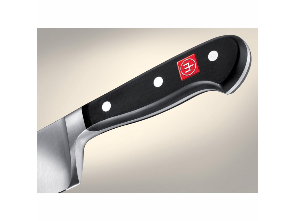 Serija nožev Classic odlično predstavlja umetnost izdelave nožev blagovne znamke WÜSTHOF. Gre za najbolj priljubljeno serijo v ponudbi WÜSTHOF, ne le zaradi visokega udobja pri uporabi. To so klasični noži z zakovičenimi ročaji, katerih rezila so kovana iz enega kosa legiranega nerjavečega jekla X50CrMoV15. Zaradi uporabe visokokakovostnih materialov in natančnega brušenja se ponašajo z visoko in dolgotrajno ostrino. Izjemno funkcionalni noži Classic so izdelani z veliko skrbnostjo do zadnje podrobnosti. Natanko tako, kot je bilo pričakovano od nožev Solingen. Po prvi uporabi ne boste več želeli drugega noža..