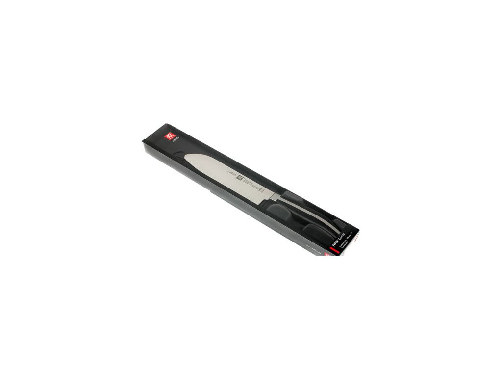Noži serije TWIN® Cuisine nemškega podjetja ZWILLING J. A. Henckels so popolna sinteza sodobnega koncepta nožev z vzdržljivim plastičnim ročajem in preizkušenim polnim držalom - vendar na nov način. Revolucionarno vodoravno držalo teh nožev je brezkompromisno popolna oblikovna rešitev, logotip znamke iz nerjavečega jekla na peti ročaja pa daje nožem viden pečat ekskluzivnosti in zanesljivosti. Noži TWIN® Cuisine s svojo inovativno zasnovo izpolnjujejo najvišje zahteve glede udobja pri uporabi in natančnega upravljanja nožev.