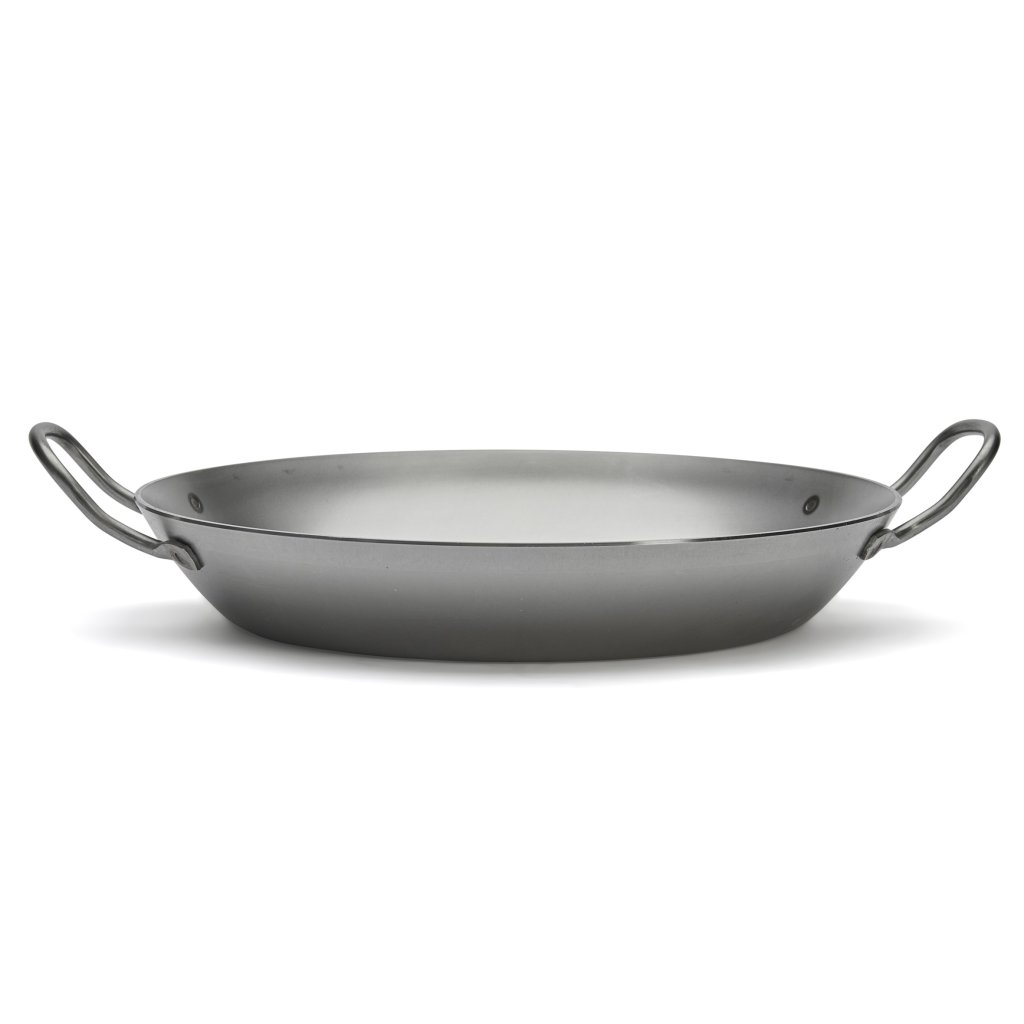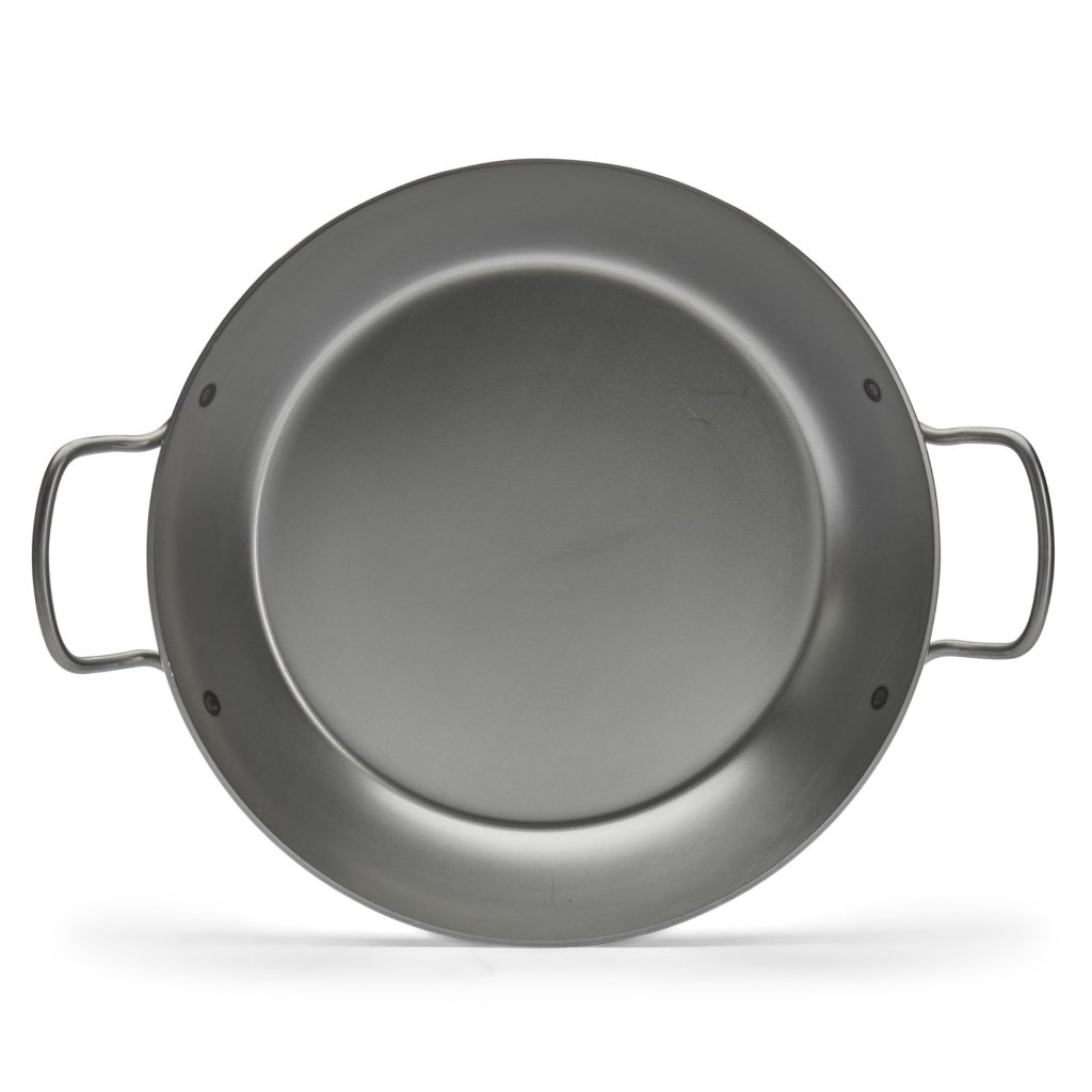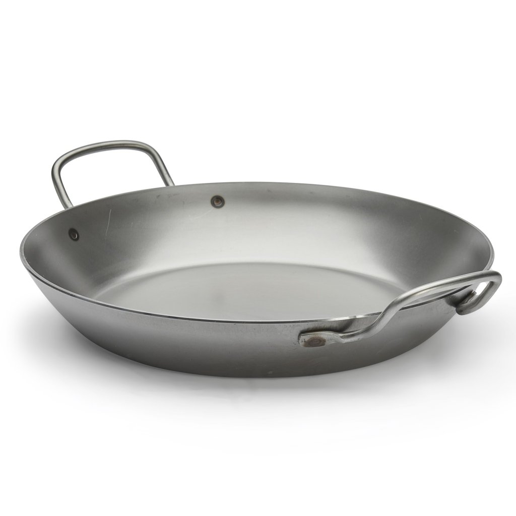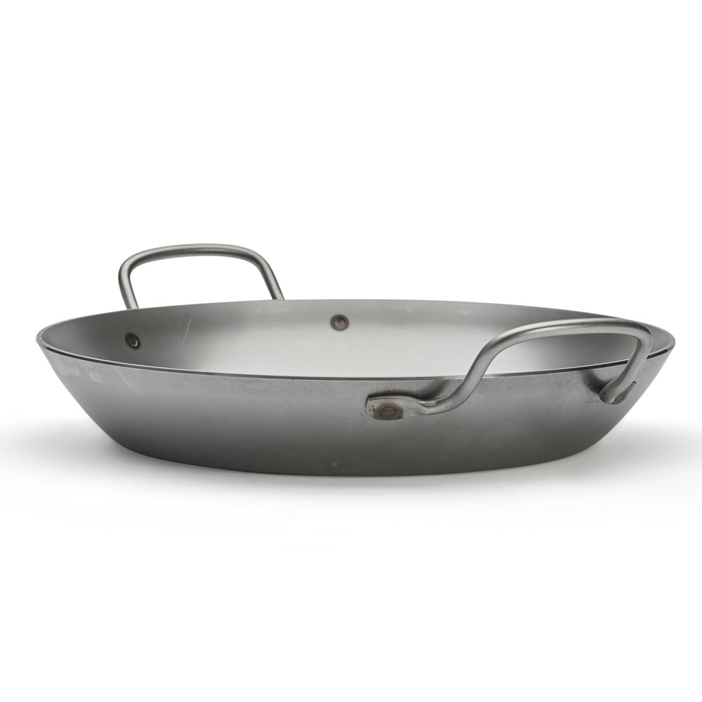 - Jeklena ponev de Buyer CARBONE PLUS s premerom 32 cm in dvema ročajema je večnamenski pripomoček, idealen za pripravo paelle in drugih jedi, ki zahtevajo hitro izhlapevanje tekočin