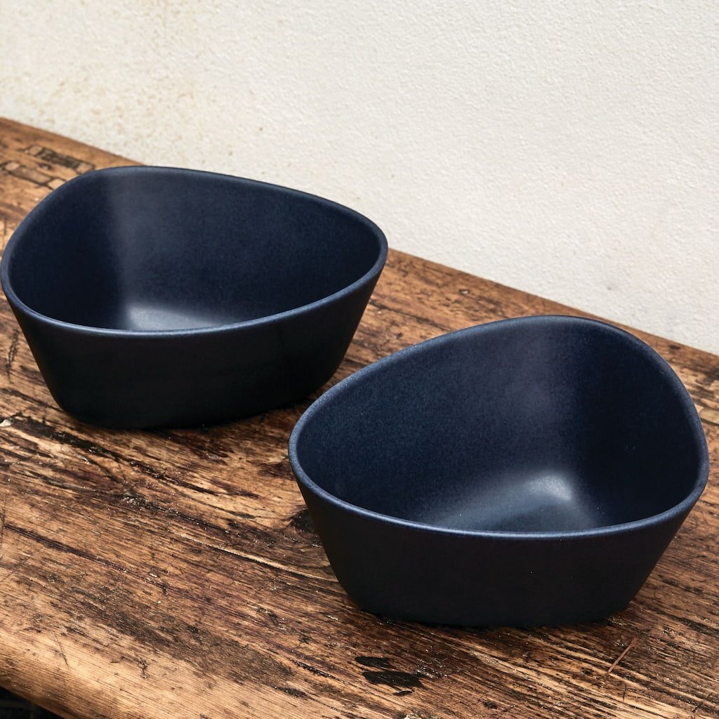 Servirna skleda KRIVLJINA 22 cm, temno modra modra, kamnita posoda, LIND DNA