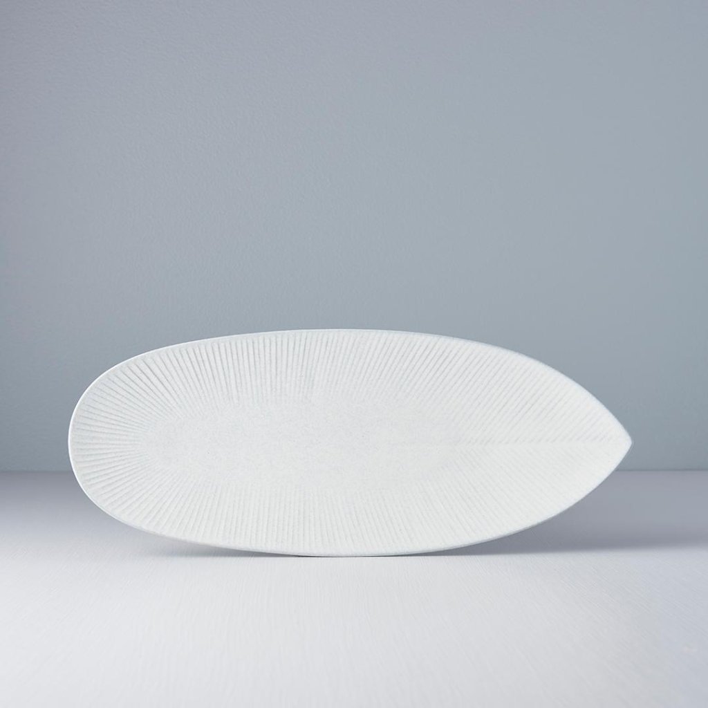 - Podolgovat servirni krožnik SNOW LEAF z dolžino 31 cm prinaša eleganten in čist način serviranja glavnih jedi, sušija ali skupnih jedi v subtilno minimalističnem duhu.