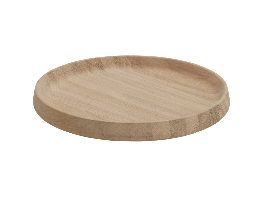 - okrogel servirni pladenj iz masivnega hrastovega lesa, oblikovan v skandinavskem duhu preprostosti
