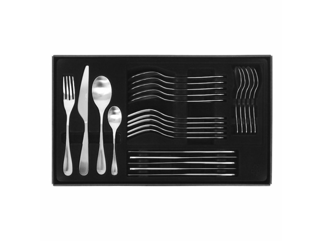 - set jedilnega pribora za 6 oseb vsebuje 24 kosov: 6 vilic, 6 nožev, 6 žlic in 6 čajnih žličk, idealno za vsakodnevno uporabo in praznične priložnosti