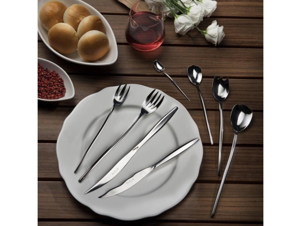 - zaradi podaljšanih ročajev in podrobnega oblikovanja je pribor udoben za držanje in ustvarja edinstven vizualni vtis