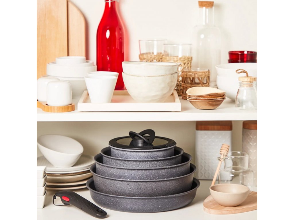 Set loncev INGENIO NATURAL FORCE L3969053, set 5, siva, aluminij, Tefal