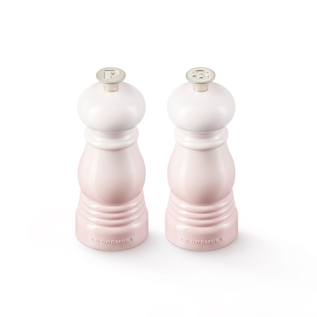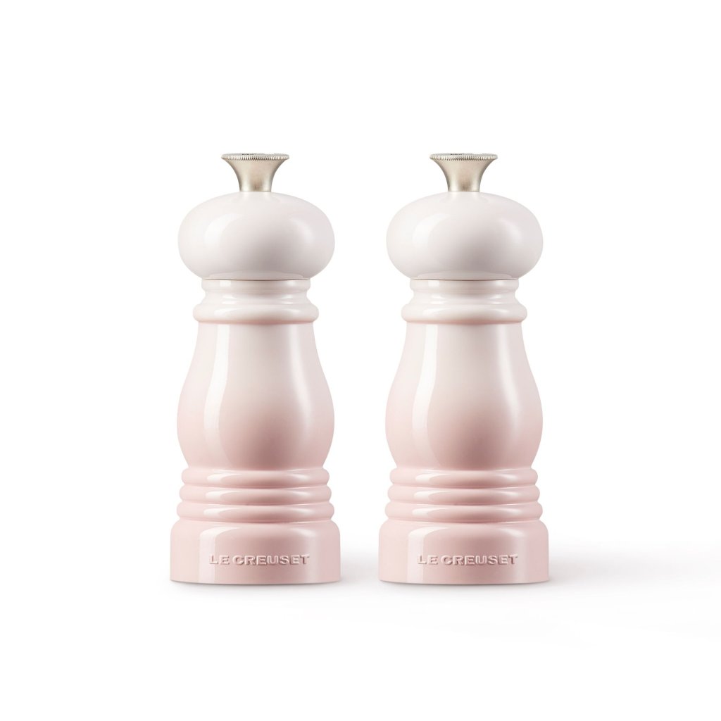 - Komplet mini mlinčkov za sol in poper Le Creuset v odtenku SHELL PINK v kuhinjo prinaša stil, funkcionalnost in veselje do vsakodnevnega začinjanja.