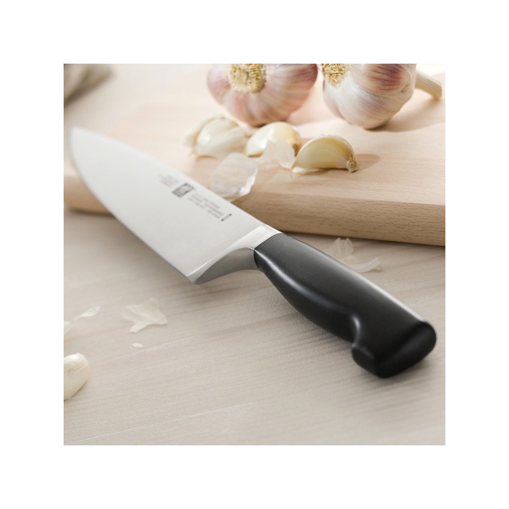 Serija FOUR STAR® nemškega podjetja ZWILLING J. A. Henckels je že legenda med kakovostnimi noži, ki jih pogosto iščejo kuharski mojstri. Na trgu je bil prvič predstavljen leta 1976, zaradi uporabe visokokakovostnih materialov in revolucionarne tehnologije izdelave nožev z brezšivnim sintetičnim ročajem pa je postal eden najbolje prodajanih nožev na svetu. To so zelo ostri, visokokakovostni noži, izdelani iz posebnega jekla po patentirani metodi kovanja iz enega kosa jekla, kar zagotavlja visoko stopnjo udobja in varnosti pri uporabi.