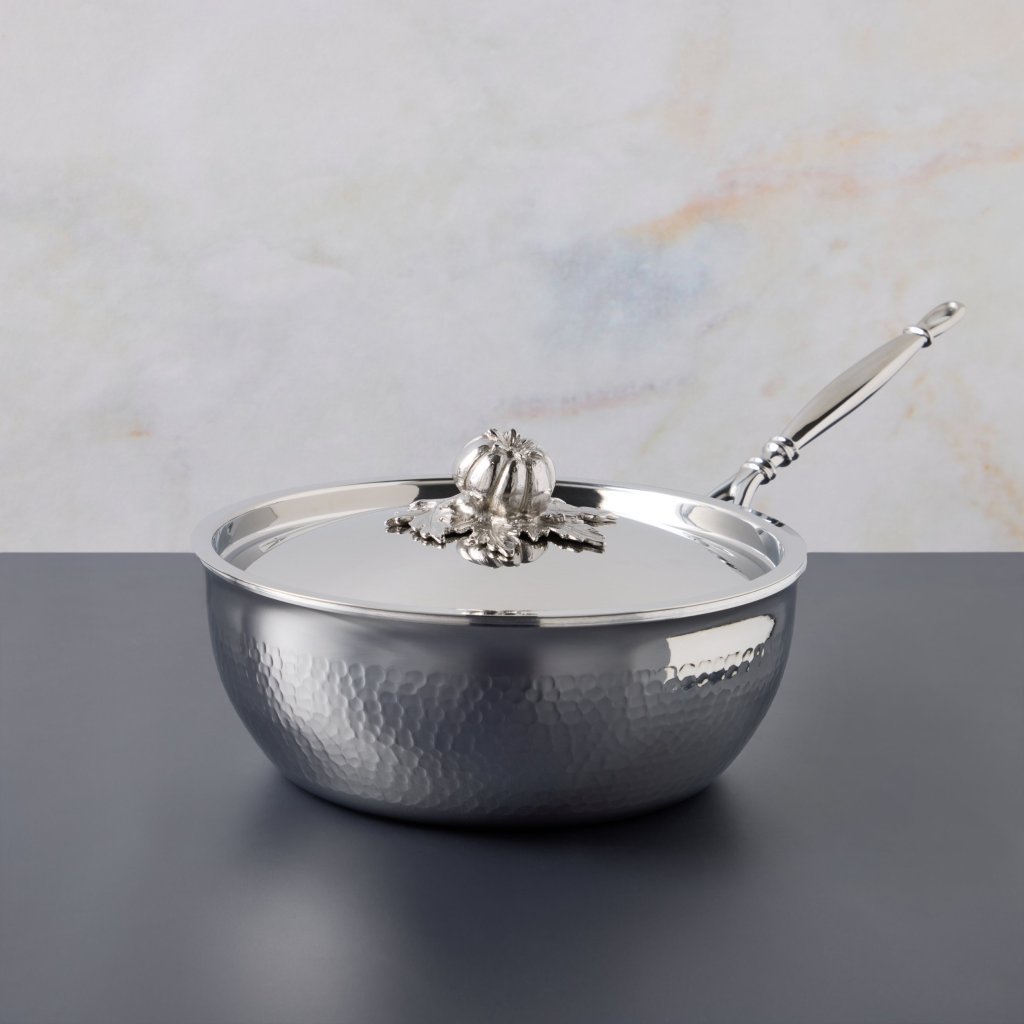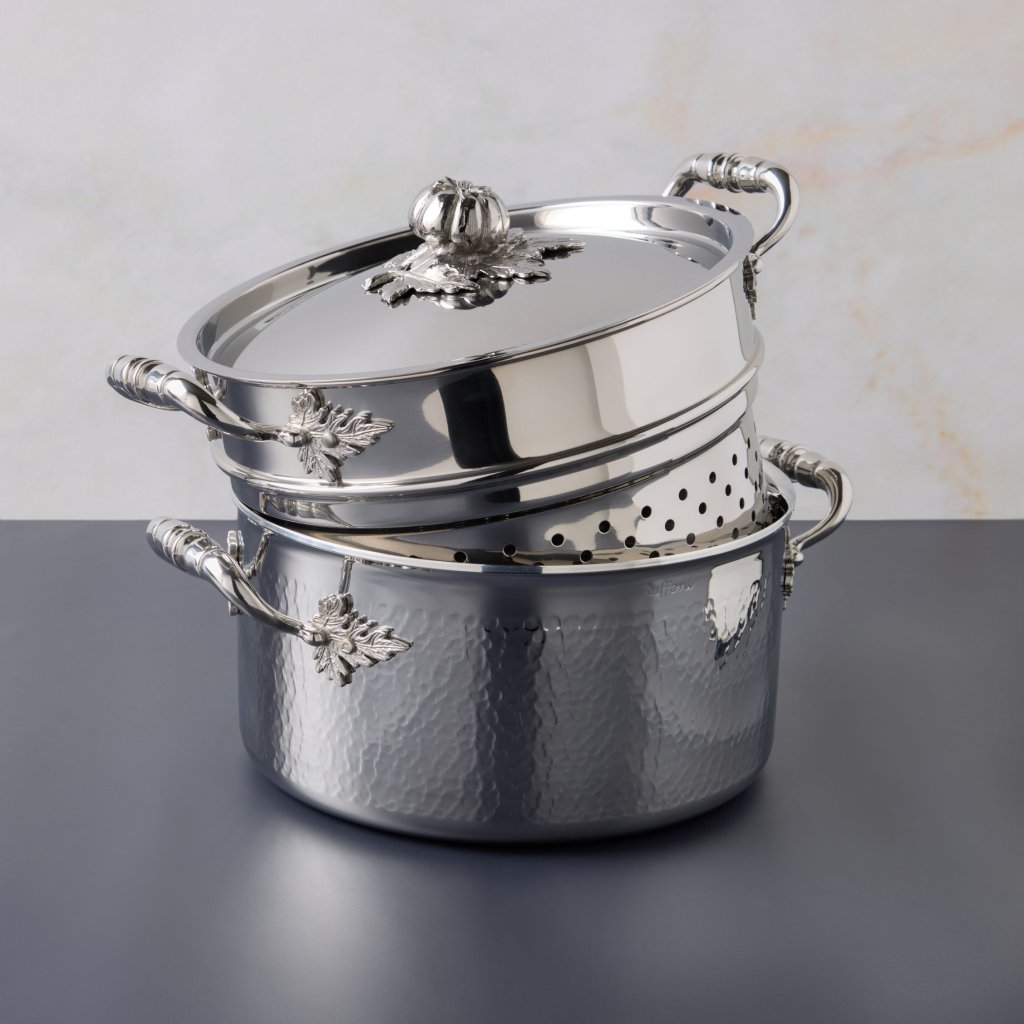 - ročaji iz nerjavečega jekla in ročaj pokrova so okrašeni z drobnimi listi in pritrjeni s trpežnimi zakovicami iz nerjavečega jekla
