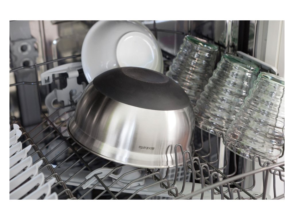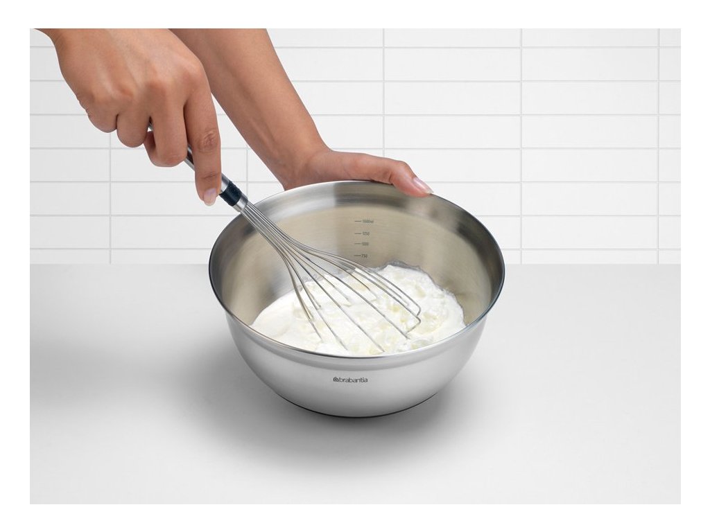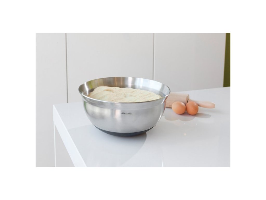 Ali čutite popolno zadovoljstvo, ko lahko mešate in mešate? S Brabantia posodami za mešanje iz nerjavečega jekla izboljšajte svoj slog. Merilna skala na notranji strani omogoča enostavno mešanje sestavin. Njihov rahlo ukrivljen rob je zasnovan tako, da drži sklede v optimalnem položaju za mešanje, silikonska podlaga pa preprečuje drsenje. Sklede so odporne tudi na vročino do 220 °C.
