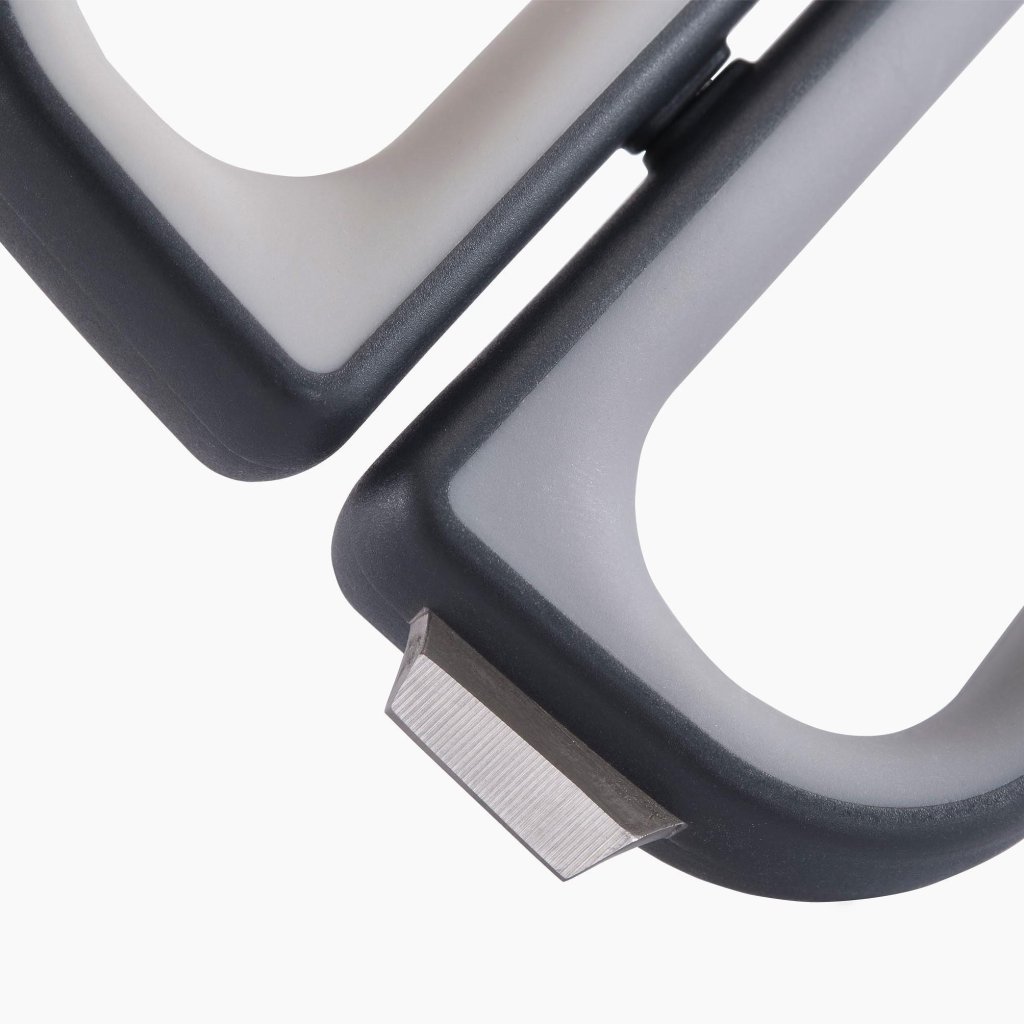 - Vgrajen rezalnik za škatle, nameščen v ročaju, omogoča varno odpiranje paketov brez potrebe po uporabi samostojnega noža.