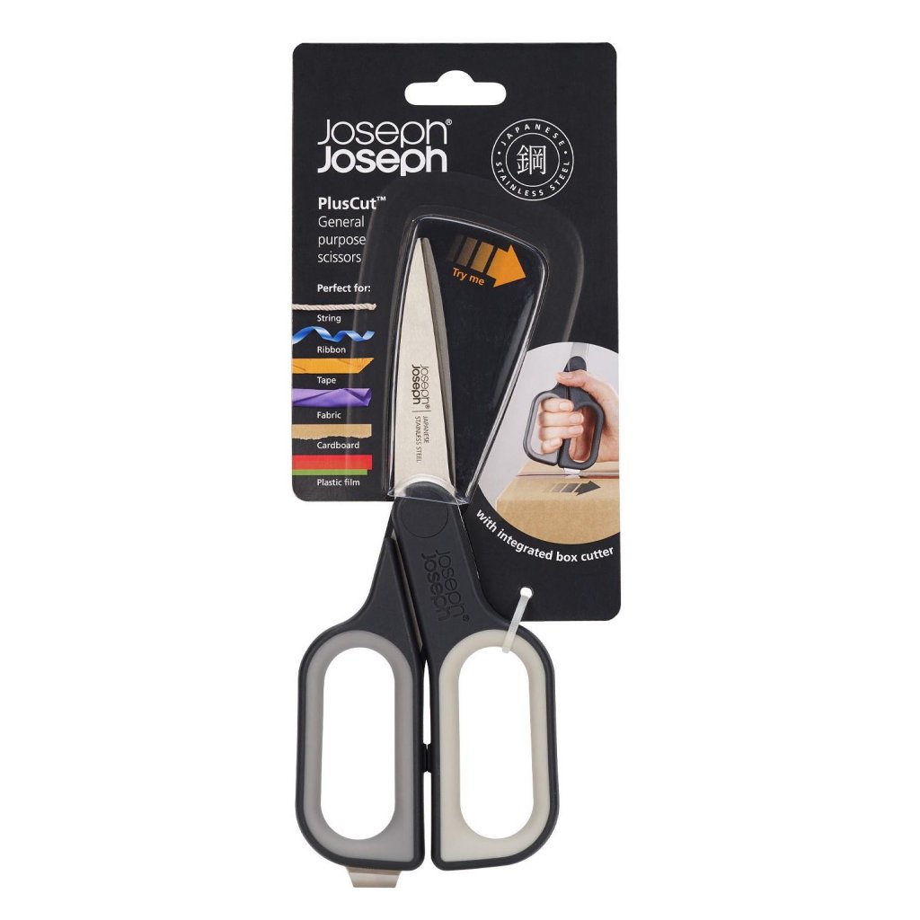 - Škarje Joseph Joseph PLUSCUT predstavljajo praktično vsestransko orodje, ki obvlada širok spekter običajnih opravil v gospodinjstvu, pisarni in delavnici.