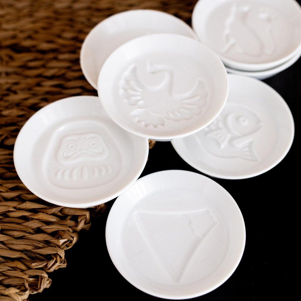 - posoda za omako z elegantnim reliefnim motivom japonskega kipa Daruma, ki se diskretno razkrije, ko je napolnjen s tekočino